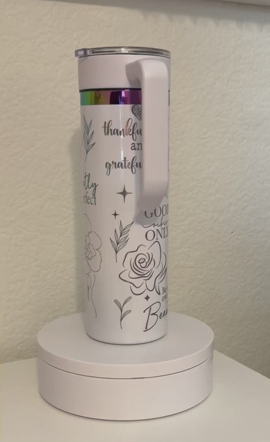 Pink K-Pop Girls Inspired 20oz Stainless Steel Tumbler with Removable Handle | Silver Engraved Tumbler